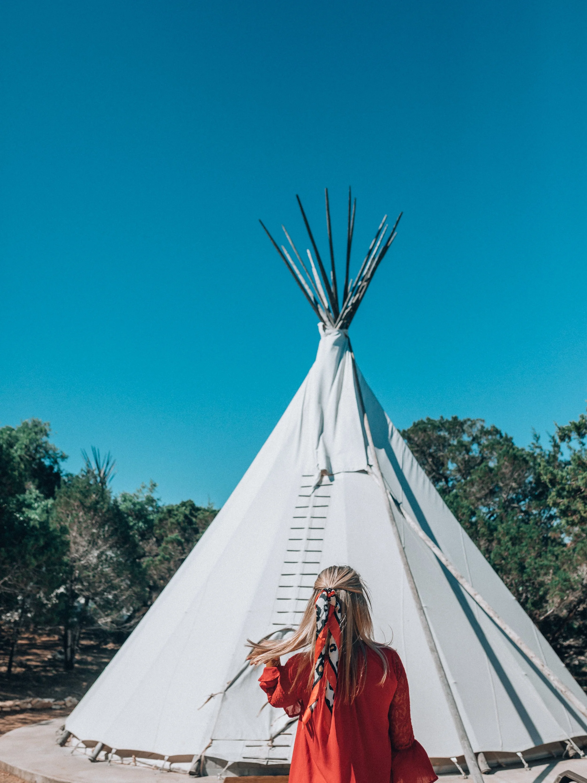 If you follow me on Instagram you know that my friend Abigail and I do an annual girls weekend road-trip. This year we took it up a notch by partnering with Mazda USA to road-trip in the Mazda MX-5 Miata. It was seriously so cute and equally sporty! Last year we went to San Antonio, so this year we decided to do something different. We knew we wanted to stay in Texas, but we wanted to visit a couple cities with hidden charm that aren’t super busy and there isn’t a lot of traffic. As soon as we started our research and found out we could stay in a teepee we were sold! Our first night of our weekend we stayed at Oeste Boutique Campground which fulfilled a LIFE LONG summer camp dream of staying in a teepee! We got there pretty late and it was so cool to see the stars over the teepee and hear all of the sounds of nature without any city noises. It was like camping, but better! There was a very clean and nice bath house with regular restrooms and nice showers. As soon as we arrived and were getting settled we noticed our king size bed had a heated blanket and we quickly plugged it in so our bed would be warm when we went to sleep! We spent some time outside and loved just enjoying the peace of the night and taking pictures of how awesome the teepee was. Next time we would definitely bring fire wood so we could enjoy the campfire! We both loved how unique the experience was and thought the heated blanket was a game changer. Also the bed was so comfy. We can’t wait to go back! We spent the next day in Dripping Springs starting with brunch and necessary amounts of caffeine at Rolling in Thyme & Dough which we both thought was delicious and highly recommend! Then we explored Dripping Springs for a bit. Neither of us realized before going how much there is to do in and around Dripping Springs, and it felt like we didn’t have enough time. Before we went to our hotel we made a quick stop at Dutchman Family Winery. They have a winery, restaurant, and beautiful area for a picnic. I would definitely recommend spending an afternoon there! The second night of our trip we spent at Sonesta Bee Cave Austin which had been highly recommended to us! It’s a close distance to downtown Austin, but just far enough away to avoid the crazy traffic. We got settled and then quickly changed for dinner. After so much traveling it was convenient and just what we needed to have dinner at our hotel’s restaurant and rooftop lounge Meridian 98 Honestly it did not disappoint. I’m a sucker for restaurants that are farm to fork, but equally obsessed with rooftop lounges so it was the best of both worlds. The drinks, food, and staff were awesome. I would definitely recommend the charcuterie plate and lettuce wraps. All of their cocktails were incredible and super unique. Also 10/10 recommend the chocolate chip cookie skillet! It was unreal… praise hands! Saturday we slept in and then went down to the pool for a bit. We didn’t swim because it was crazy windy, but I would go back just to enjoy the beautiful pool! The weekend was so fun and just what we needed to relax and hang out!
